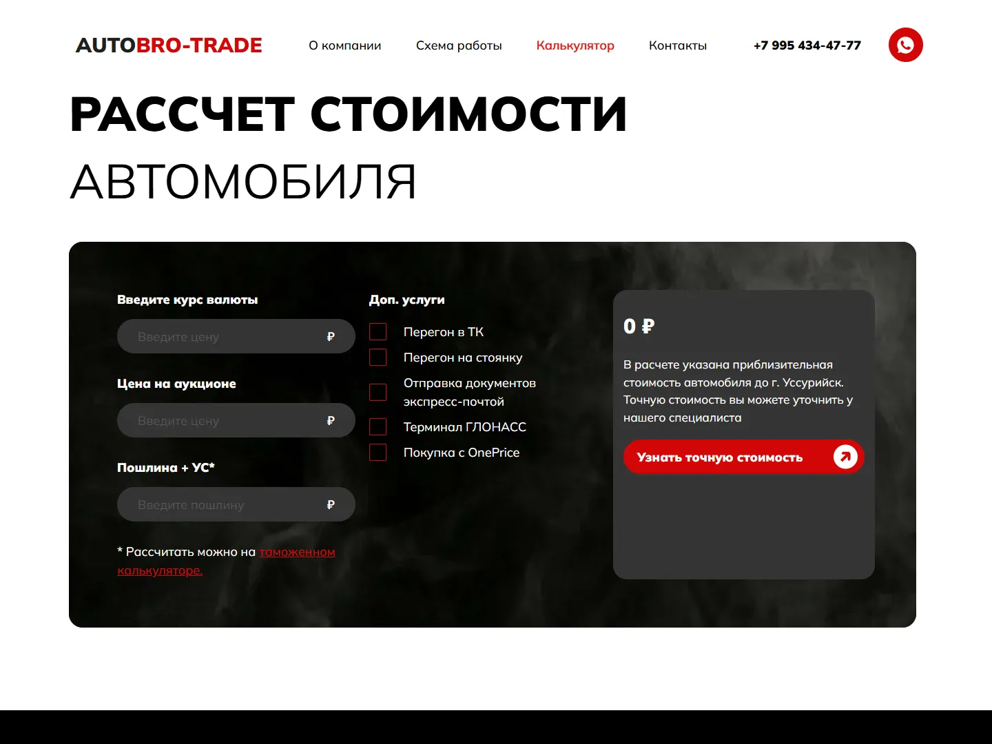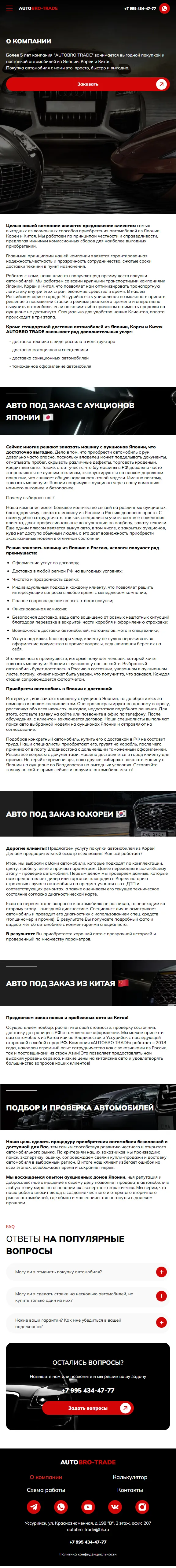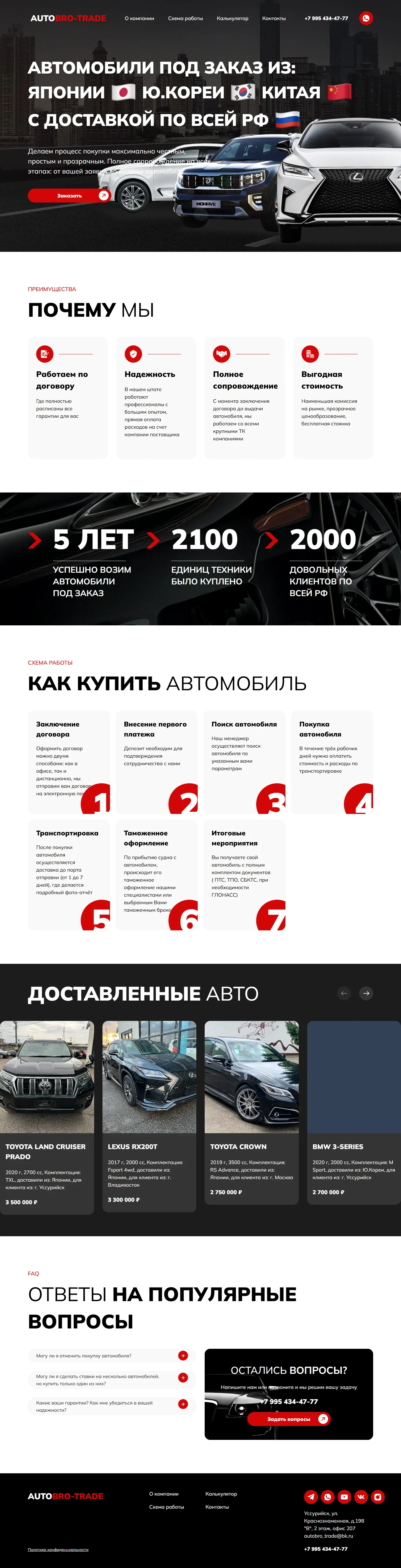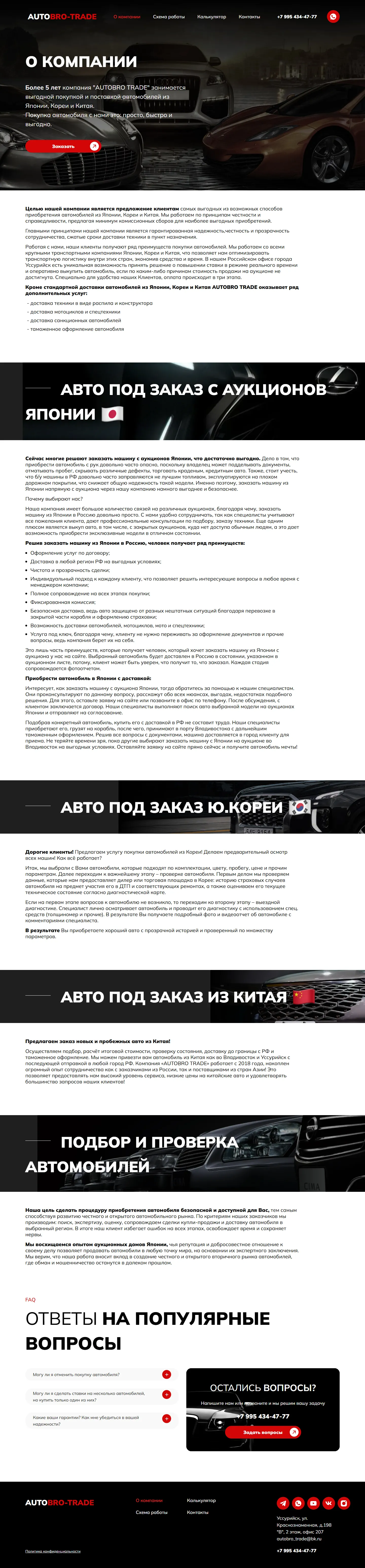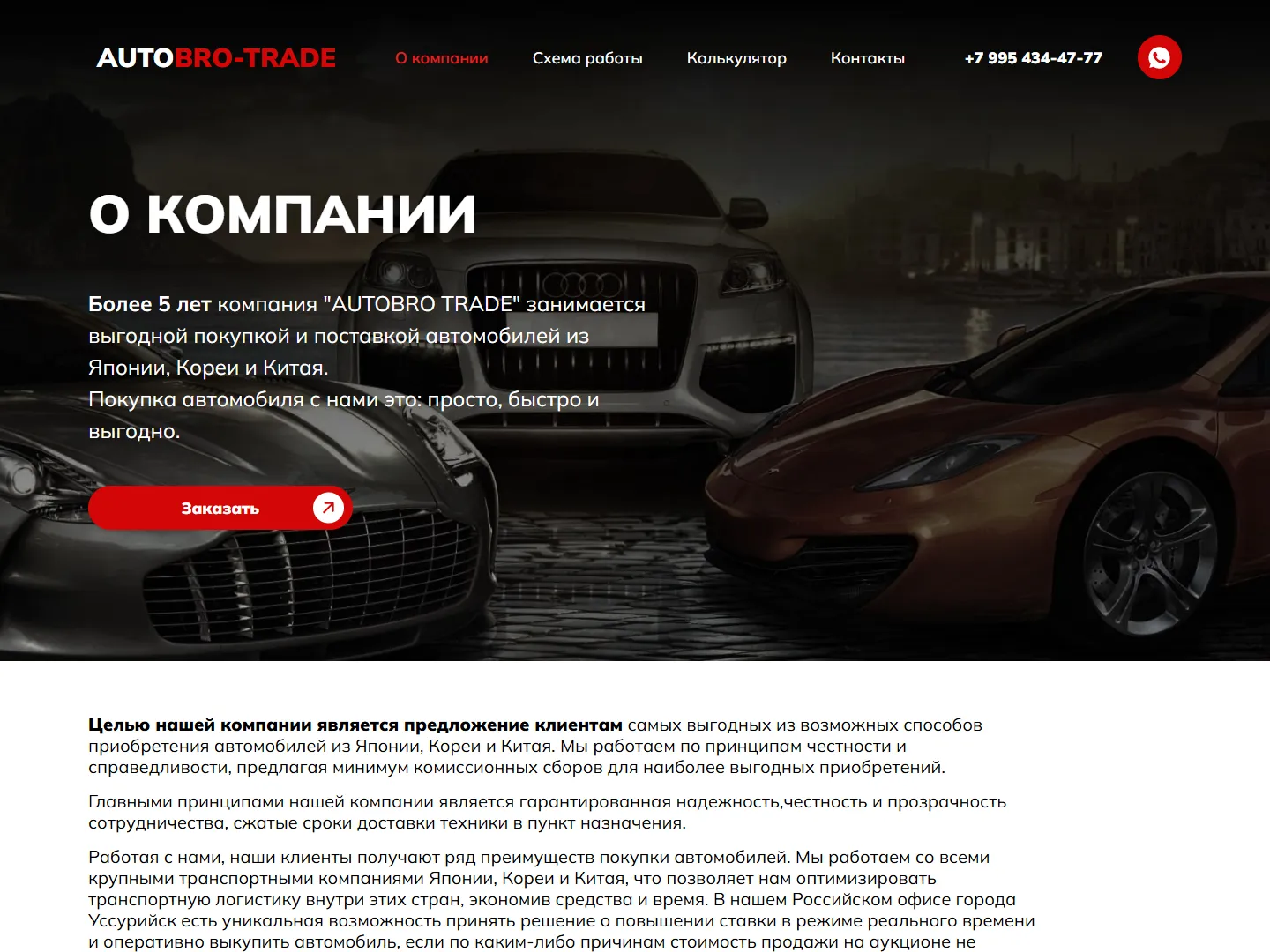 Описание: Онлайн-платформа для заказа автомобилей из Японии, Кореи и Китая с калькулятором цен, CMS и обратной связью. Полное сопровождение.